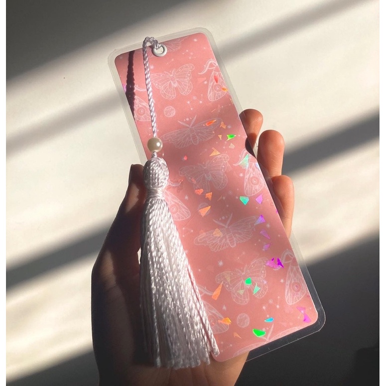 Marcador de Página Plastificado com tassel com/sem efeito holográfico - libélulas Rosa