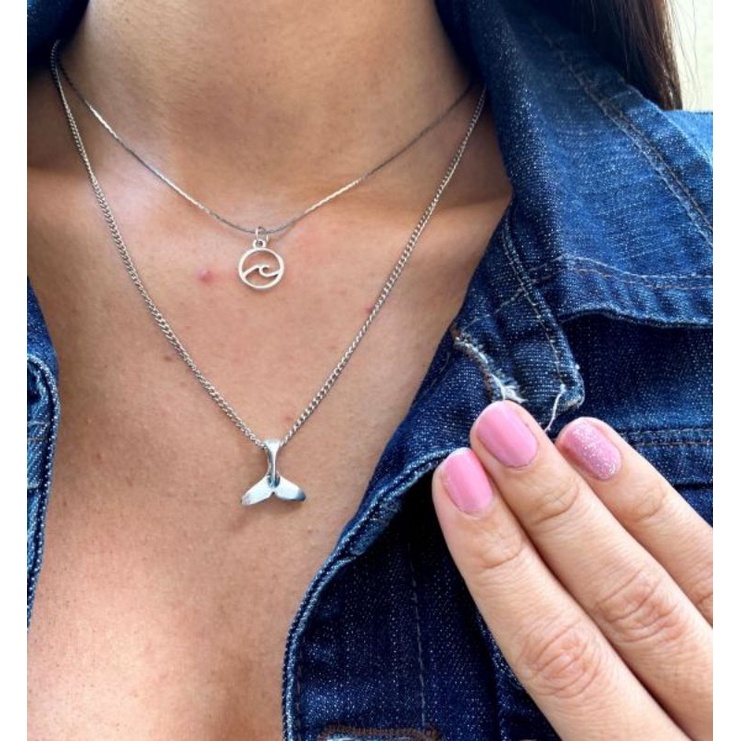 Colar Duplo Choker Gargantilha com Pingente de Onda/Calda de Sereia