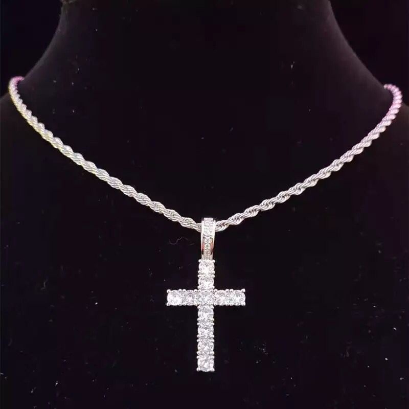 Corrente Cordão Baiano De Luxo Com Pingente De Cruz Ice Cravejada Joias Masculinas E Femininas, Acessórios De Joias, Colar Unissex