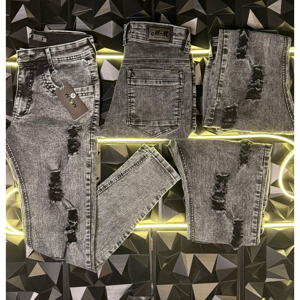 Calça Jeans Masculina Estilo Jogador Rasgada cinza com Elastano Slim Premium Moda Masculina marmorizada Envio Imediato