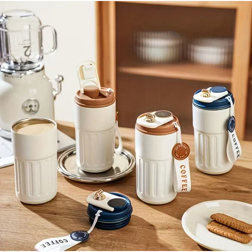Copo Café Inteligente com Display LED - Garrafa Térmica 420ml de Aço Inoxidável Portátil para Viagem