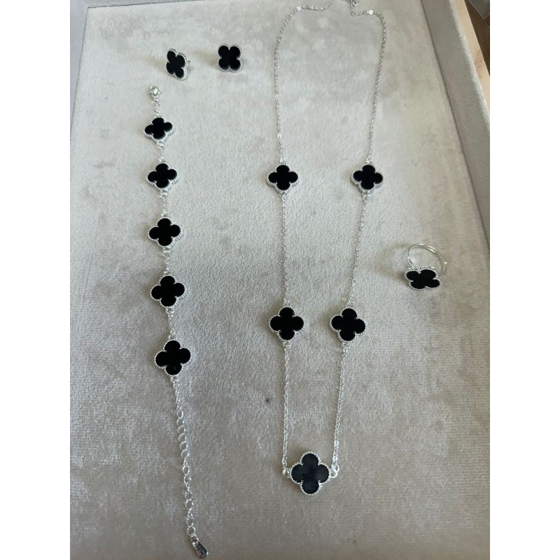 kit colar+ brinco+pulseira flor da sorte trevo banhado a prata 925 legítima ( envio em 24 horas)