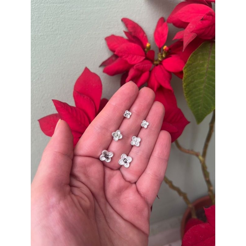 trio brinco flor trevo sorte banhado a prata 925 legítima ( envio em 24 horas)