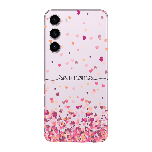 Capinha para Samsung S23 FE Anti Impacto Personalizada - Chuva de corações rosa com nome
