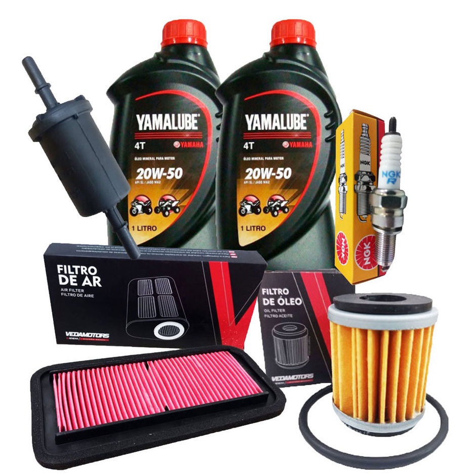 Kit Revisao Yamaha Fazer 250 2018 2019 2020 2021 2022 2023 Troca Oleo Yamalube 20w50 Filtros e Vela