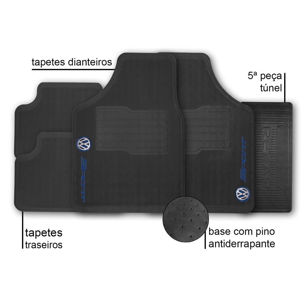 Tapete Volkswagen Gol Quadrado Versátil Borracha 5 peças - Tapete Automotivo, Tapete para Carro, Carpete Carro, Carpete para Carro, Sport, Preto