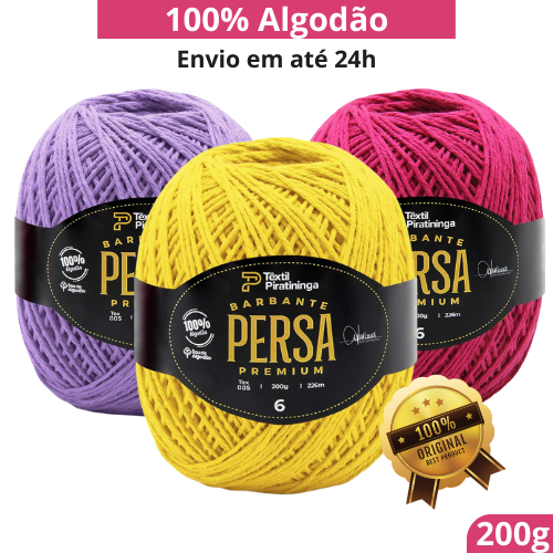 Barbante Persa Premium 100% Algodão Têxtil Piratininga 200g Fio número 6 - Escolha as cores