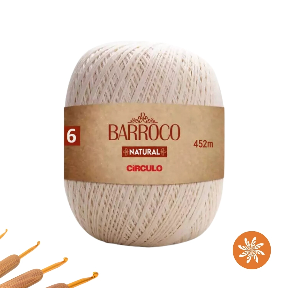Barbante Barroco Natural 4/6 100% Algodão Com 452M Fio Para Artesanato Crochê Tricô Circulo