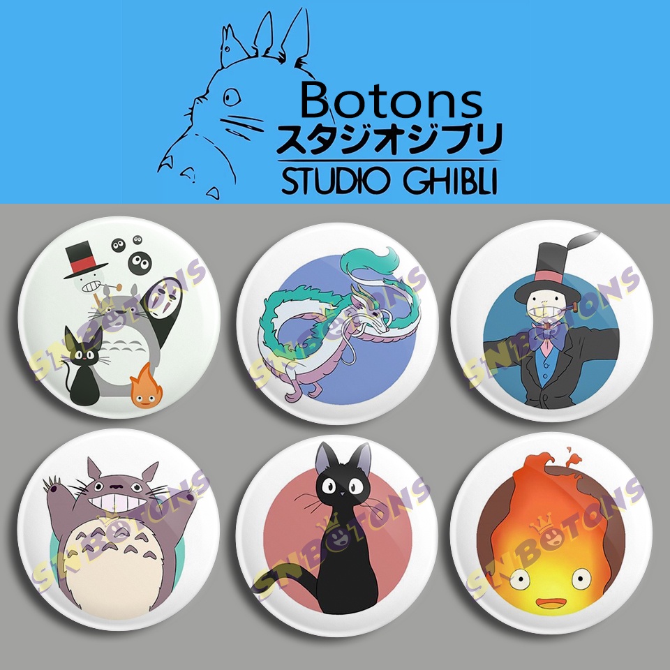 Kit até 15 Botons Bottons Studio Ghibli - ( Botton Anime Otaku - Totoro / Viagem de Chihiro / Entrega da Kiki / calcifer / Castelo animado ) - Pin Broche Alfinete
