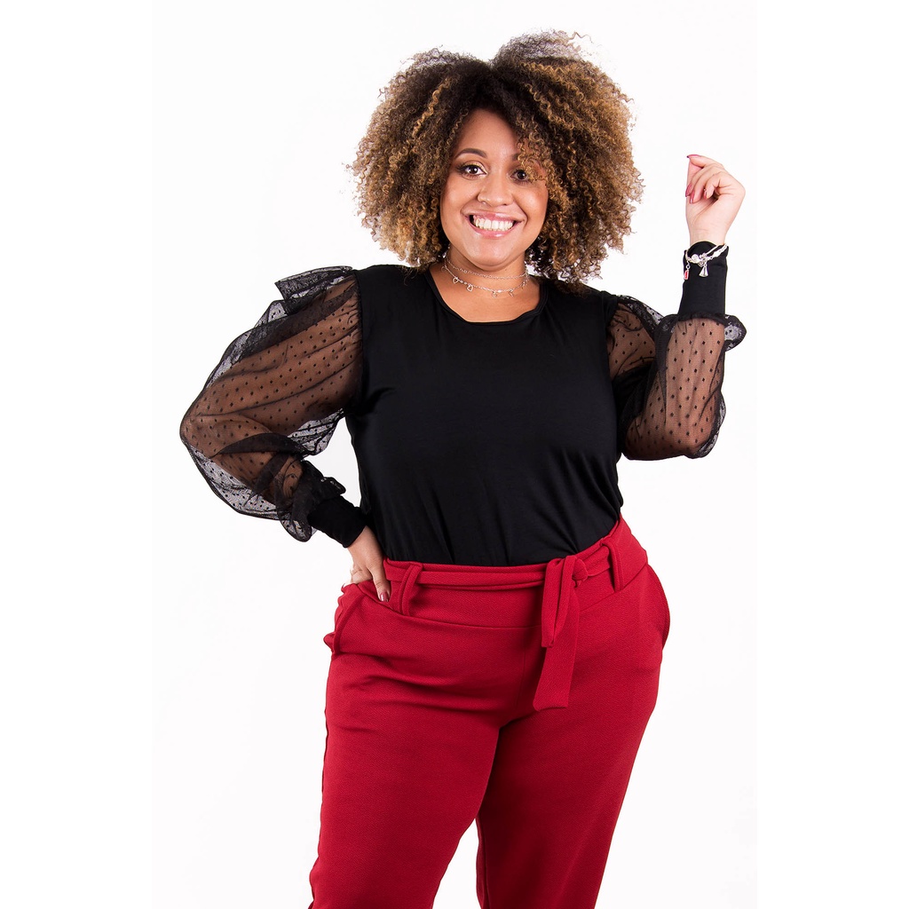 Blusa Manga Longa Feminina Plus Size Bufante De Tule 46 ao 60