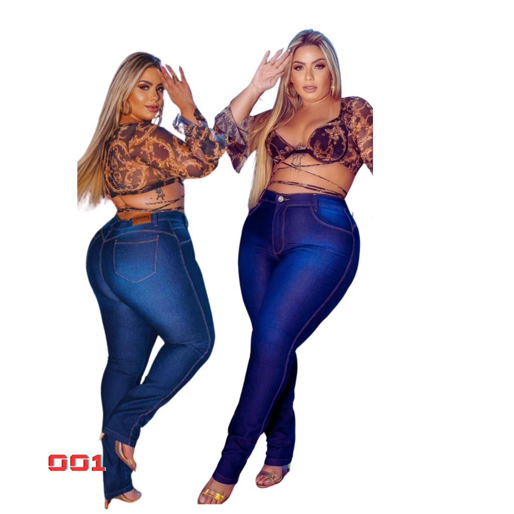 kit 2 calça feminina plus size jeans cintura alta com lycra fashion