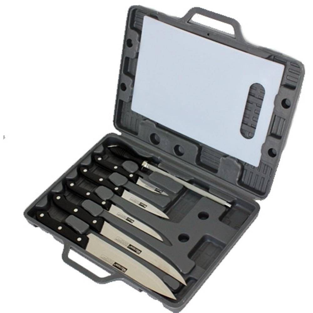 Kit Churrasco 8 Peças com Maleta e Tábua Inox
