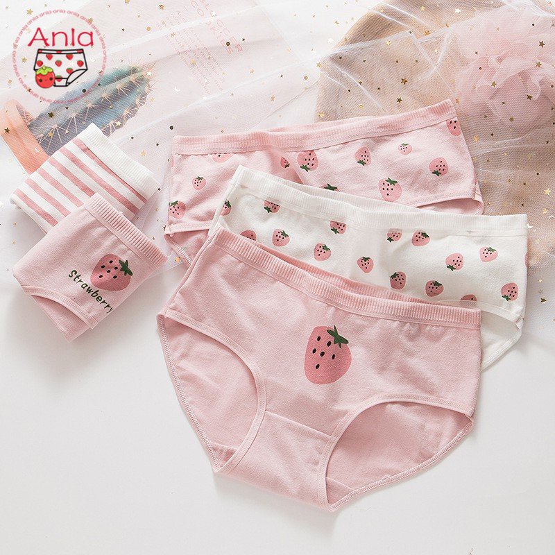 ✨ Anlaღ 【 Estoque Pronto 】 Strawberry Stripe Cute Print Breathable Algodão Confortável Calcinhas Femininas