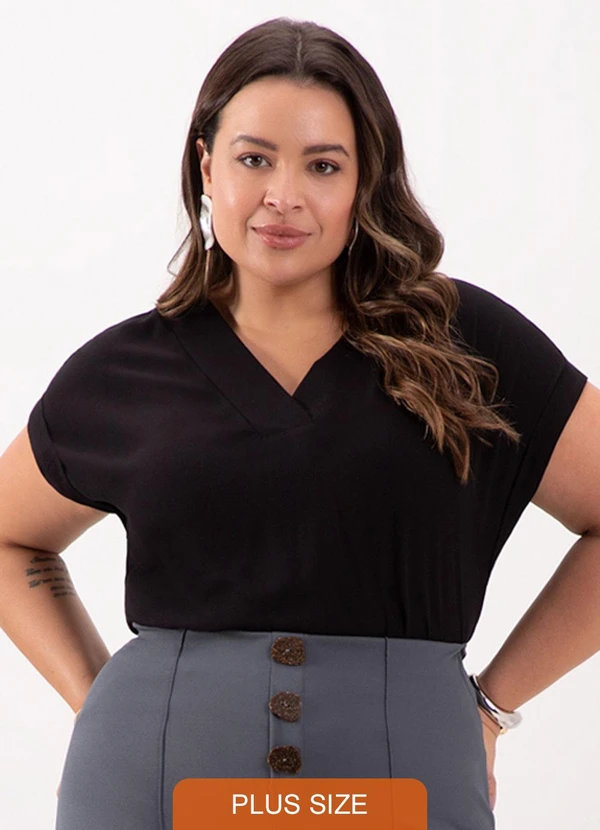 Lunender Mais Mulher - Blusa de Mangas Curtas com Decote em V Preto