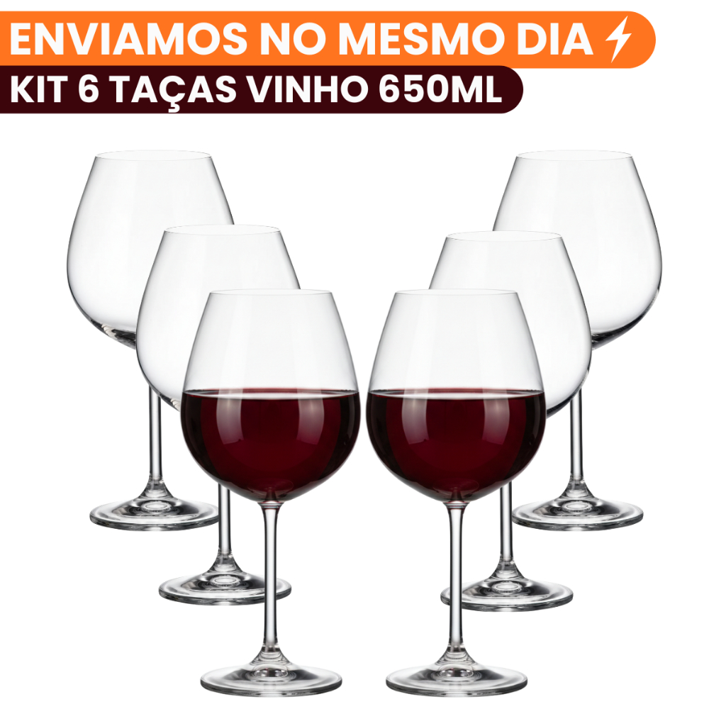 Kit 6 Taças De Vinho Vidro 650ml Cristal Titânio Gastro Transparente Bordeaux Modelo Bohemia