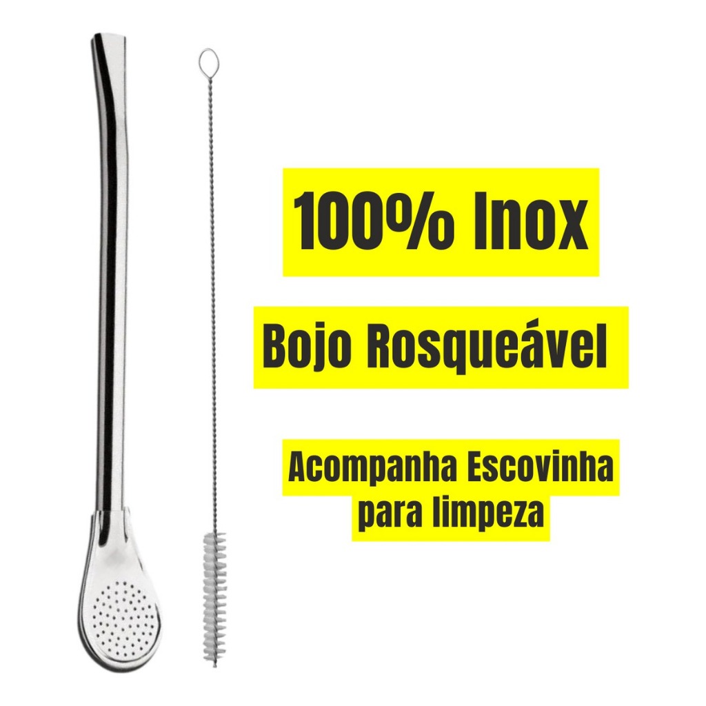 Bomba para Terere e Chimarrão de Inox Lisa Jumbo com Filtro de Mola Removível