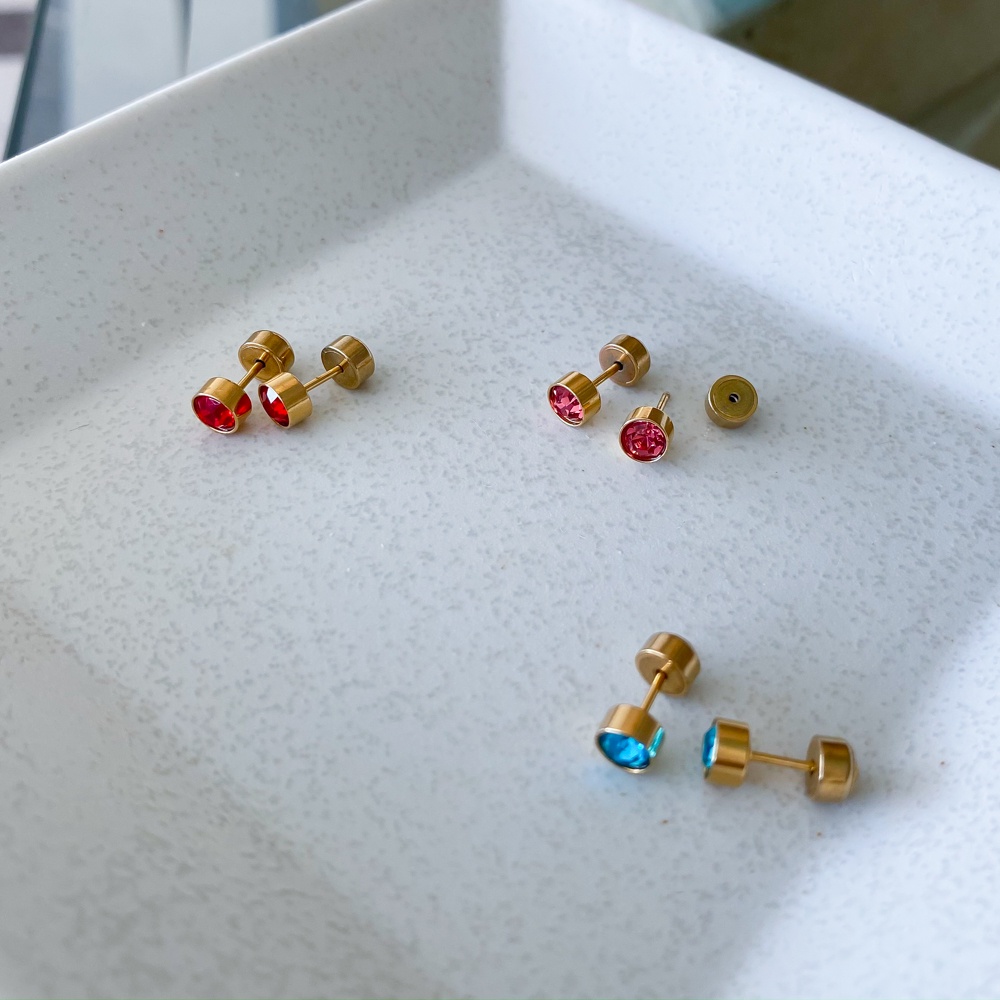 Brinco Feminino de Zircônia e Tarracha de Pressão em Aço Cirurgico Inox Dourado - Joias Semijoias Feminina Masculino Unissex Joia Primeiro Segundo Terceiro Furo Infantil Adulto Tarraxa Baby Infantil