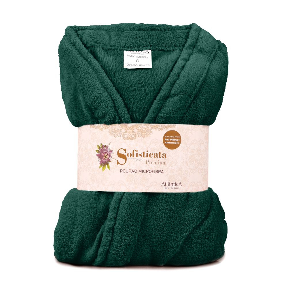 Roupão de Microfibra Adulto Masculino ou Feminino de Banho com Toque Macio Felpudo Antialérgico e Antipilling - 100 % Poliéster - Sofisticata Atlântica