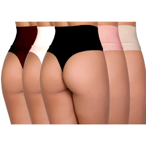 Kit com 5 Calcinhas Cintura Alta Fio Dental Duplo Modela Cintura Compressão Direto da Fábrica