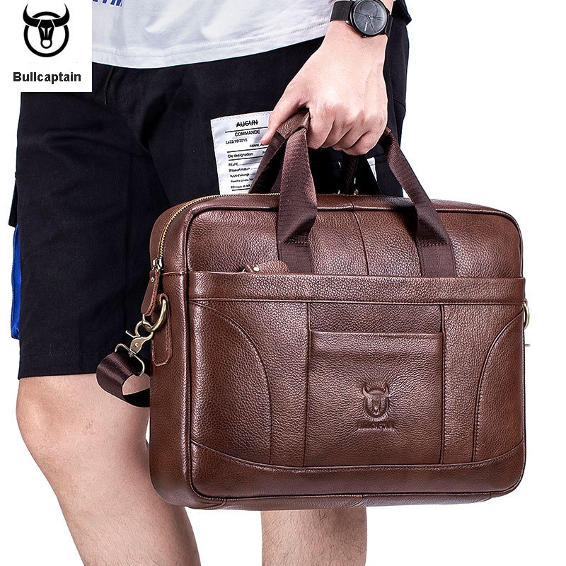Pasta De Couro De Vaca Masculina Bolsa De Mão De Negócios Mensageiro De Ombro