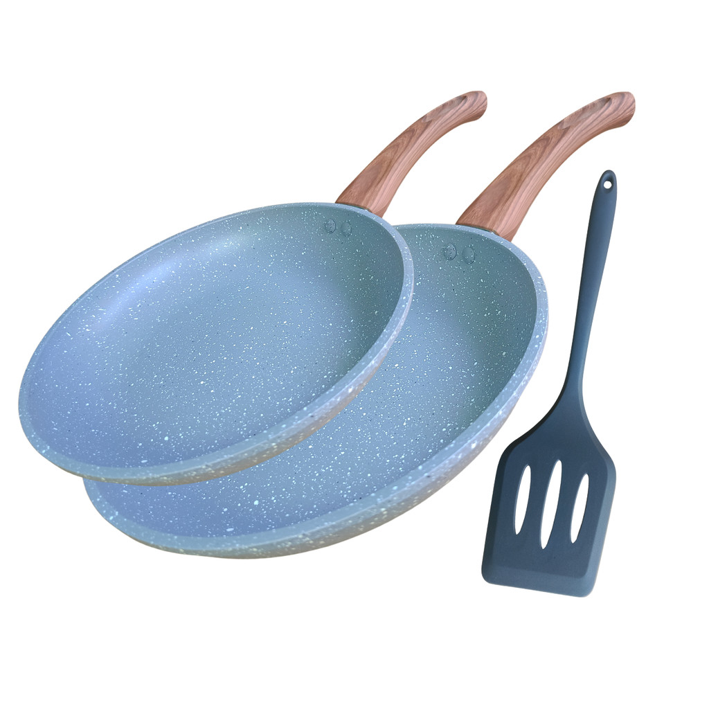 Jogo 3 Peças Frigideiras Antiaderente Cerâmica Indução Gás Espátula Silicone