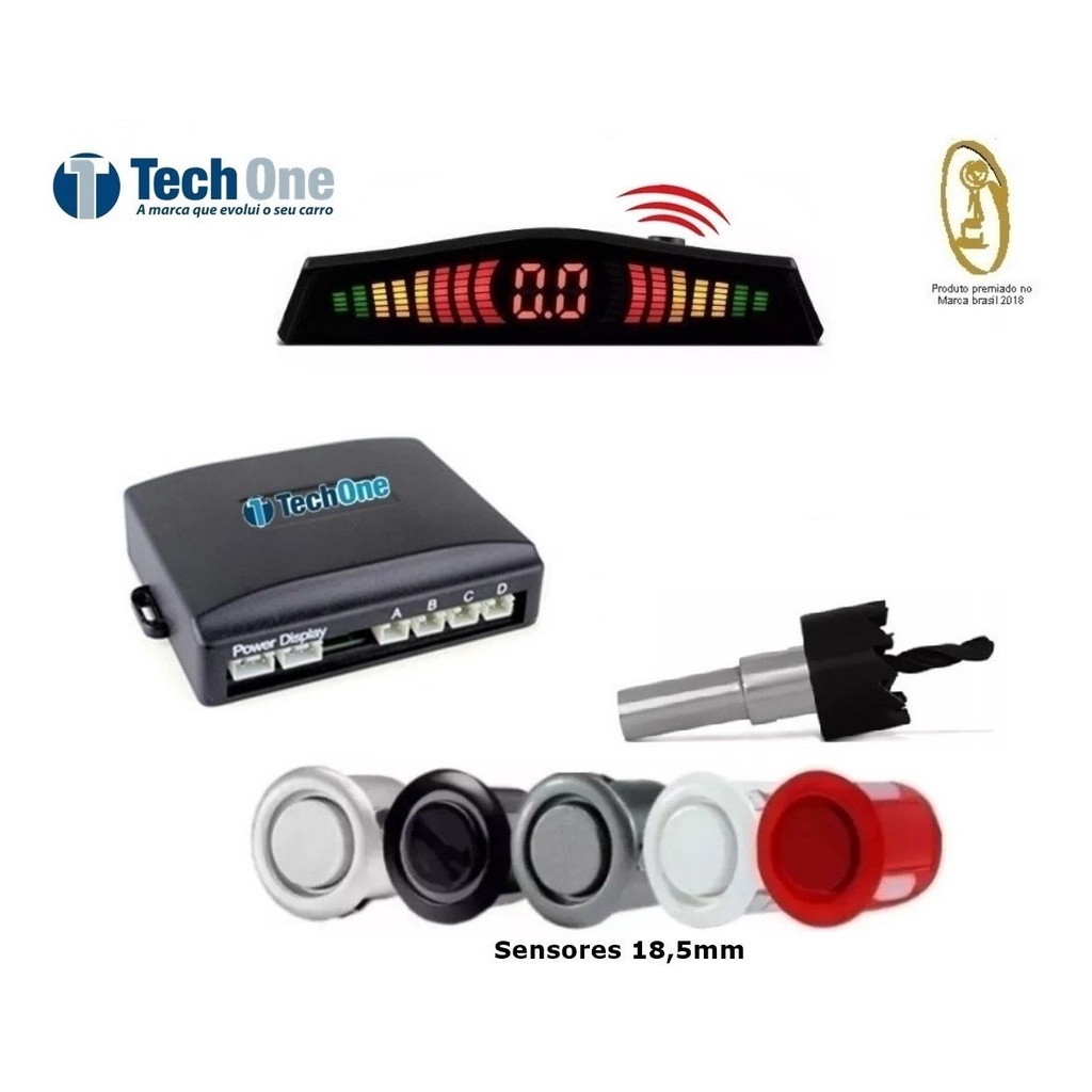 Kit Sensor Estacionamento Re 4 Sensores Display Led Sinal Sonoro Tech One