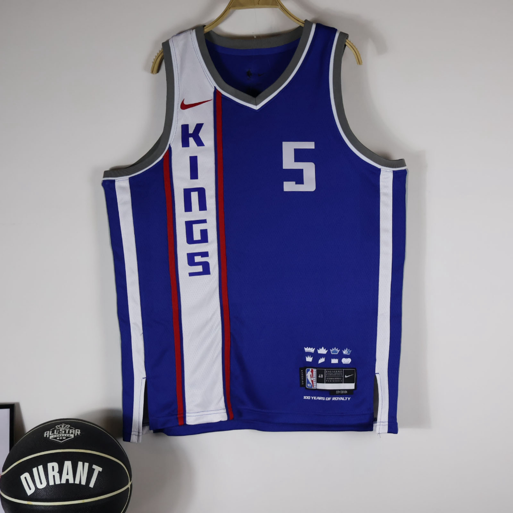 Hot Pressed Camisa NBA Sacramento Kings #5 De'aaron Fox 2023/24 Icon Edition De Basquetebol Sponsorship logo Jersey