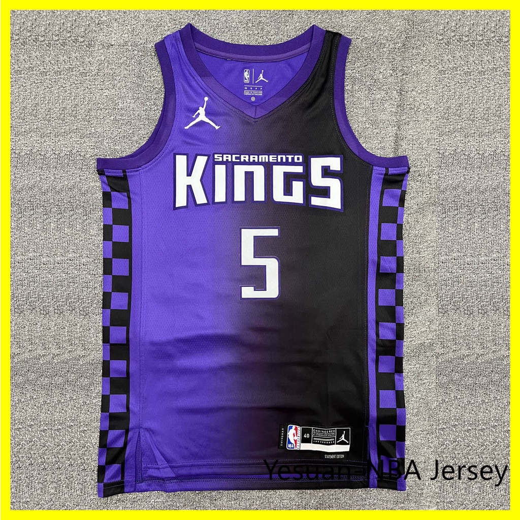 2023-24 Camisa Sacramento Kings 5 De'Aaron Fox Preto Púrpura Camiseta 2023NBA De Basquetebol Jersey