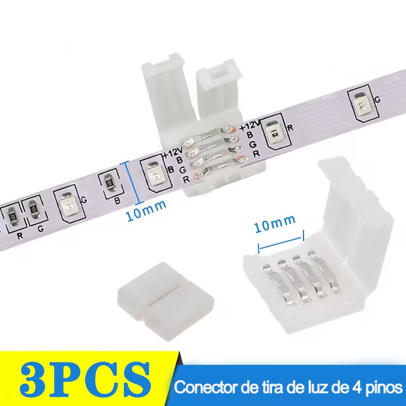 3PCS 10mm Fita LED De 4 Pinos De 10mm Conector Para Conexão De Ângulo Reto 10mm 5050 SMD RGB WS2812