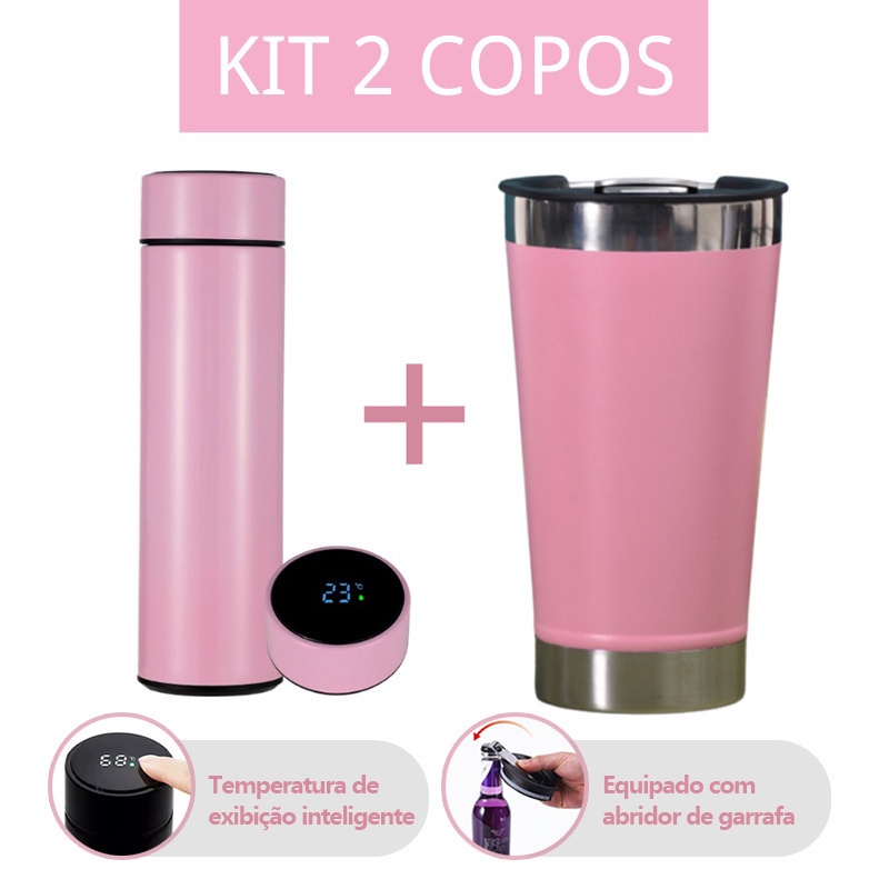 KIt 2 Copo térmico com Tampa e Abridor Garrafa térmica com medidor de temperatura Led
