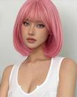 Peruca 100% BIO Orgânica Lisa Curta com Franja Rosa - wig