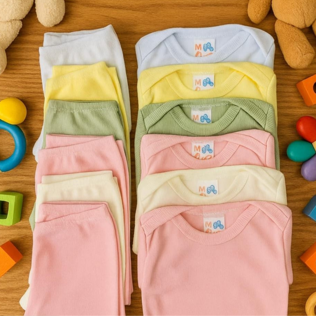 kit 6 peças Roupa Bebê Menino e Menina Body e Mijão com Punhos, Suedine 100% Algodão, Enxoval Atacado RN P M G e GG