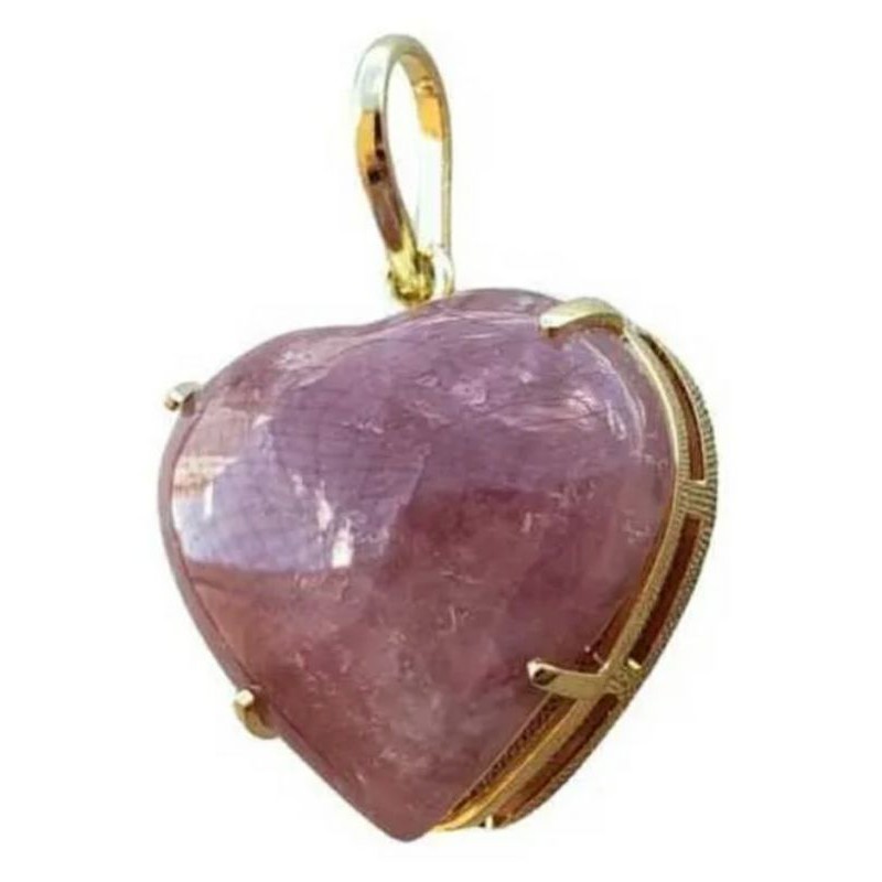 Pingente Coração De Quartzo Rosa Natural Tamanho 2,2 Cm Folheado