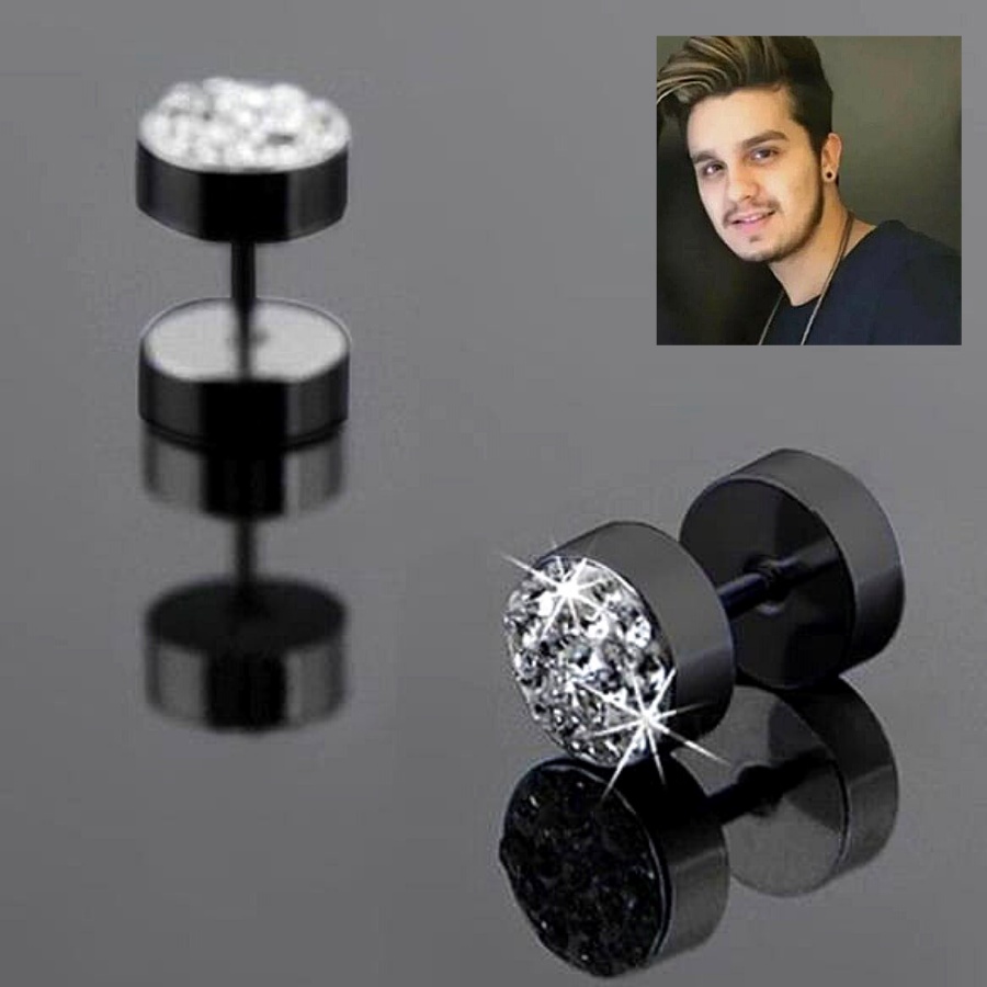 Brinco Masculino Falso Alargador Aço Cirúrgico Brinco C/ Brilho Anti Alérgico Zircônia