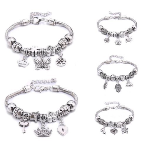 Kit 3 Pulseira Pandora】kit com 1ou 3 pc Pulseira Berloques Prata Estilo Feminina Presente moda/Modelo aleatório