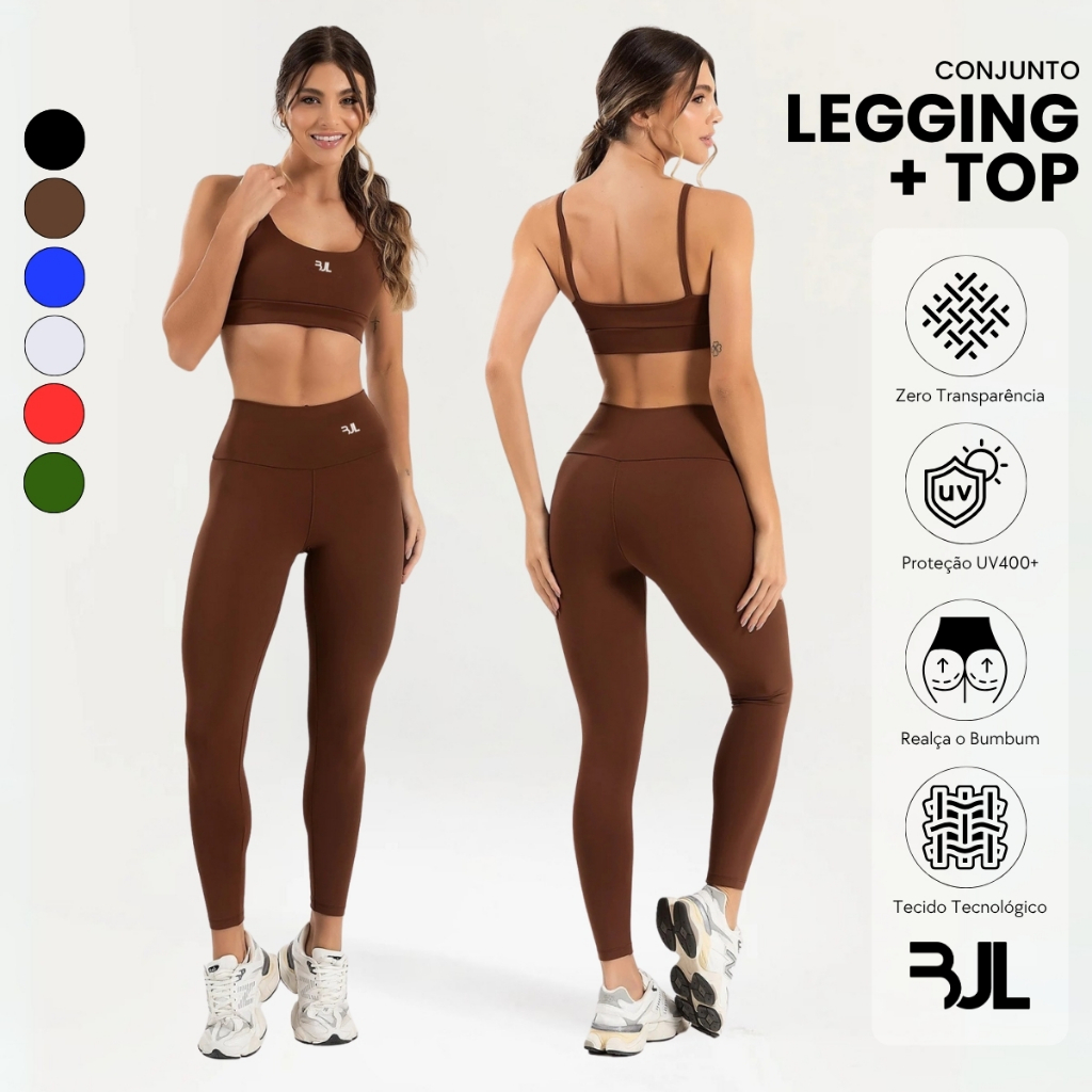 Conjunto Top e Legging Fitness Feminino ZERO TRANSPARÊNCIA Academia Conforto Corrida Suplex Premium Yoga Modelagem com C