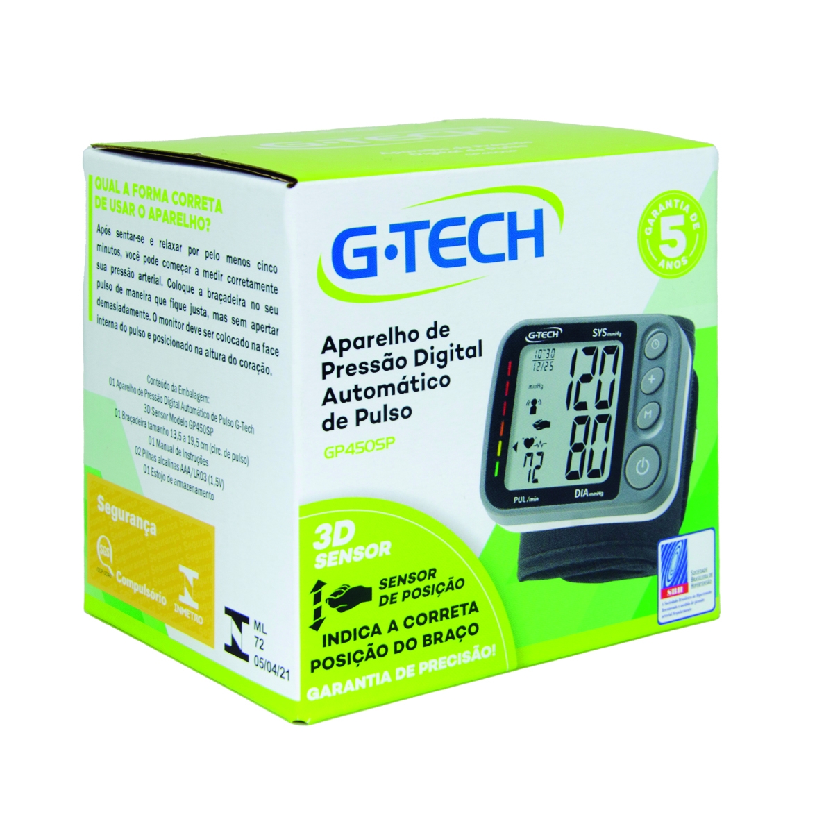 G-TECH APARELHO DE PRESSãO DIGITAL AUTOMáTICO PULSO COM SENSOR 3D GP450SP