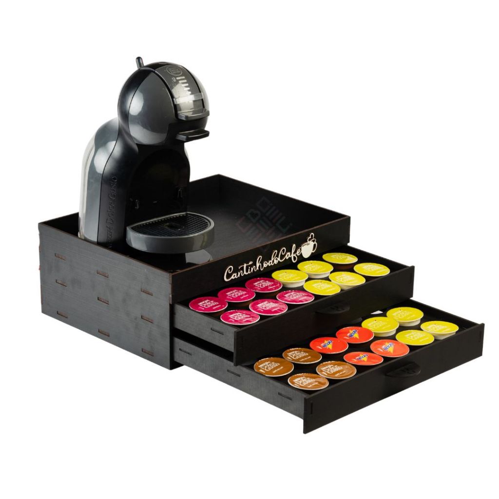 Bandeja Porta 80 Capsulas Com 2 Gavetas Embutidas Preta Dolce Gusto Três Corações Nespresso Mdf