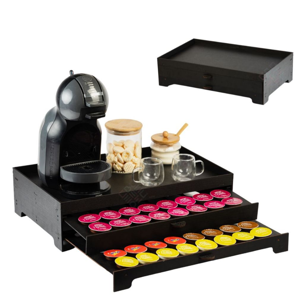 Bandeja com 2 Gavetas Porta 48 Cápsulas Dolce Gusto Preta Decoração Café Organizador Cantinho Café Apoio Cafeteira Servir Chá