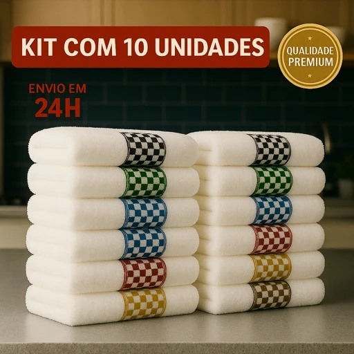Kit 10 Panos de Prato Premium 45x70 Toalha de Copa Felpudo