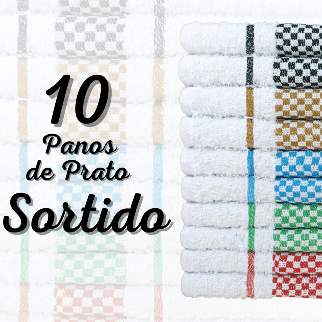Kit 10 Panos de Prato Felpudo Sortido Copa Premium 100% Algodão 45x70 cm – Alta Absorção