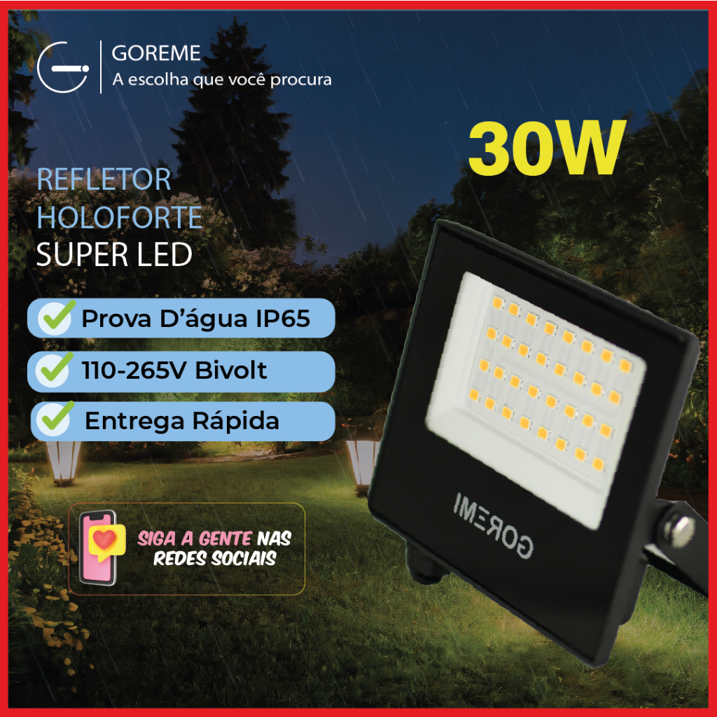 Refletor Led ECO 30W Branco Frio 6500K (Luz Branca) | Verde (Luz Verde) IP65 | Luz Econômica | Pronta Entrega