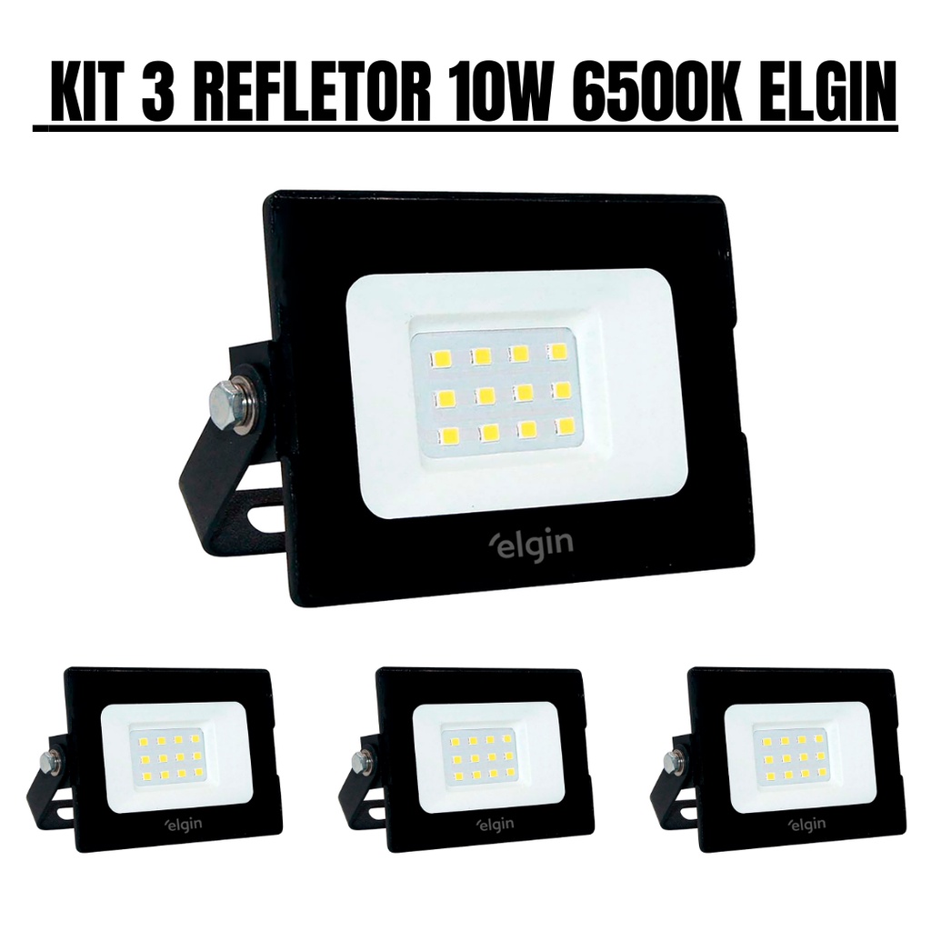 KIT 3 REFLETOR LED PROJETOR 10W IP65 6500K ELGIN