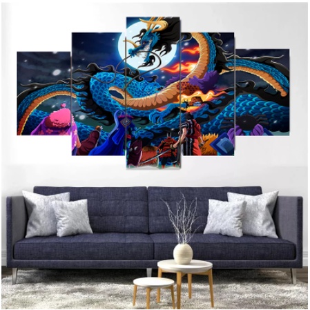 Quadros Decorativos mosaicos 5 peças 1,80 x 0,65 Arco de Wano anime one piece Samurais contra Kaidou para sua casa, quarto ou sala