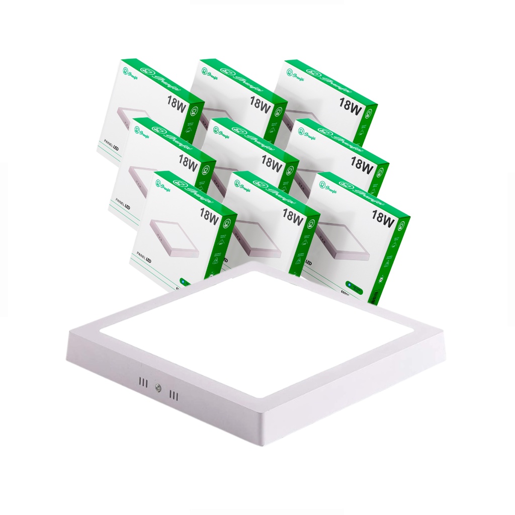 Kit 10 Luminária Painel Plafon Led 18W Quadrado Alumínio Sobrepor 6500K