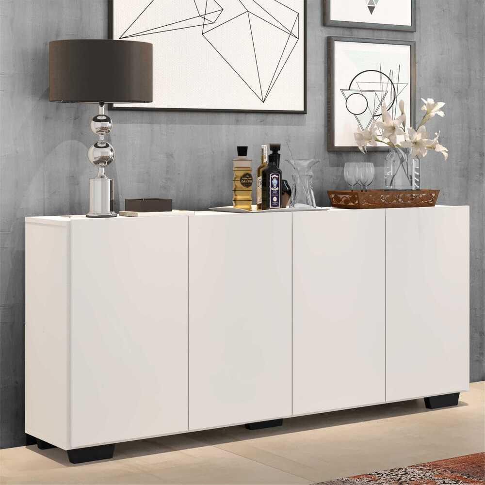 Aparador Buffet 4 Portas c/ Pés Quadrados Veneza Multimóveis Branco/Preto