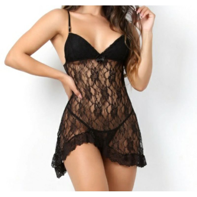 Camisola sensual em renda transparente, sem bojo ,com calcinha e alça regulável,sexy , preço baixo!