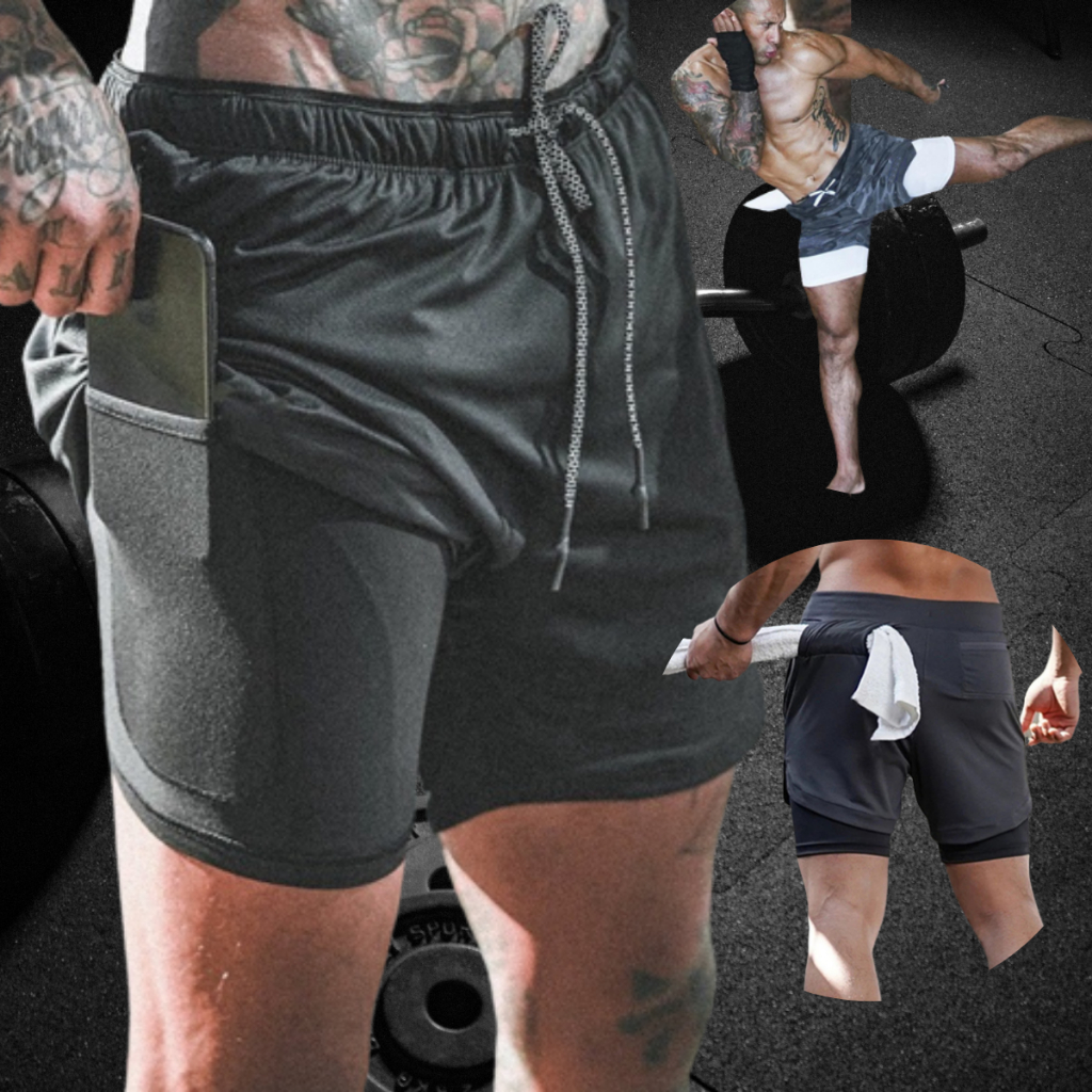 Shorts Masculino Academia 2 Em 1 Corrida Dryfit Térmico Bolso Interno Porta Celular Shorts de treino corrida luta Bermuda masculina Shorts masculino Shorts com forro e bolso porta celular