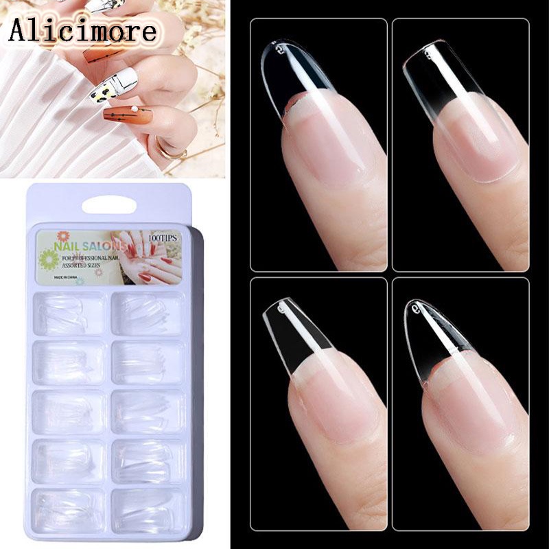 Caixa 100 Unhas Postiças Bailarina Transparente Tamanho Normal Manicure