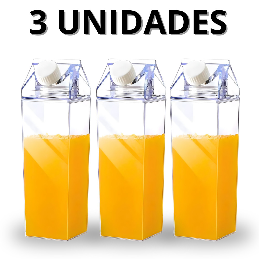 Kit 3 Garrafa De Acrílico Para Leite 1L Garrafinha De Água Transparente Suco Chá Com Tampa Geladeira